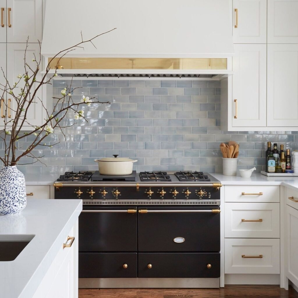 6. White Kitchen with Black Lacanche Range and Pale Blue Subway Tile