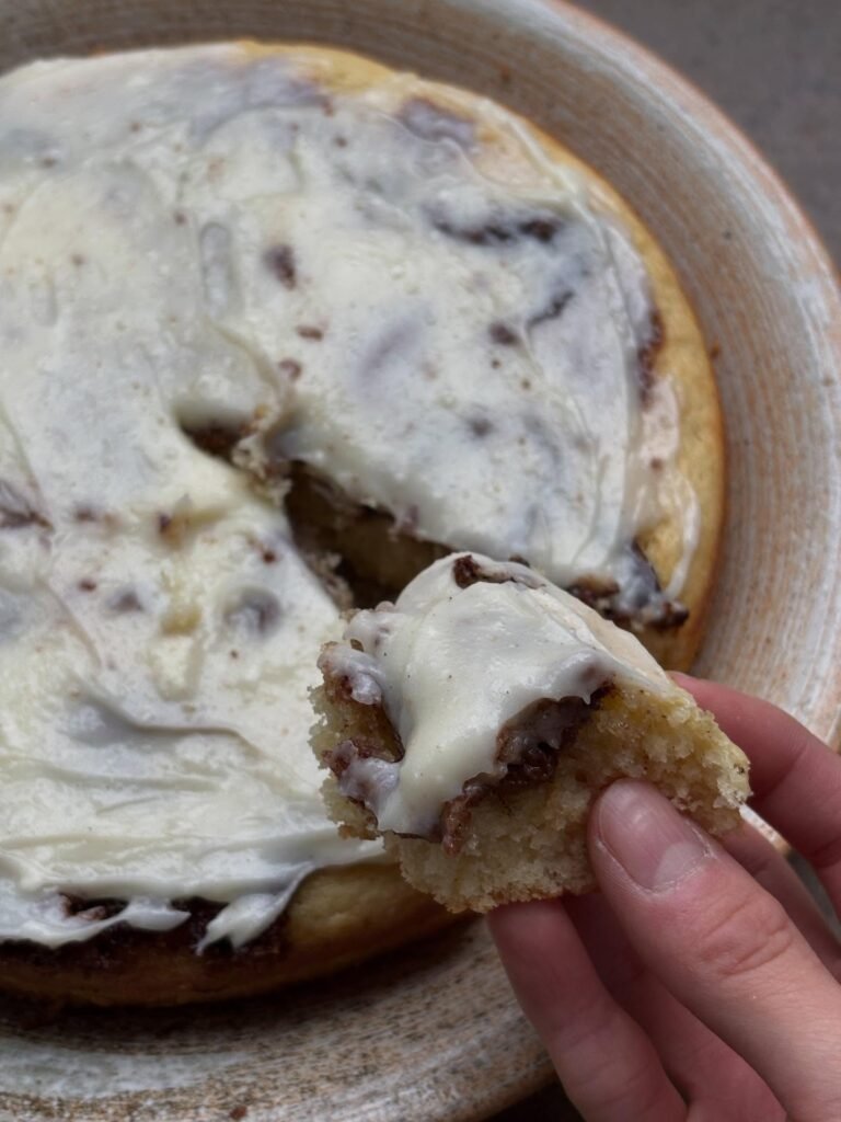 This giant cinnamon roll with thick cream cheese frosting is everything.