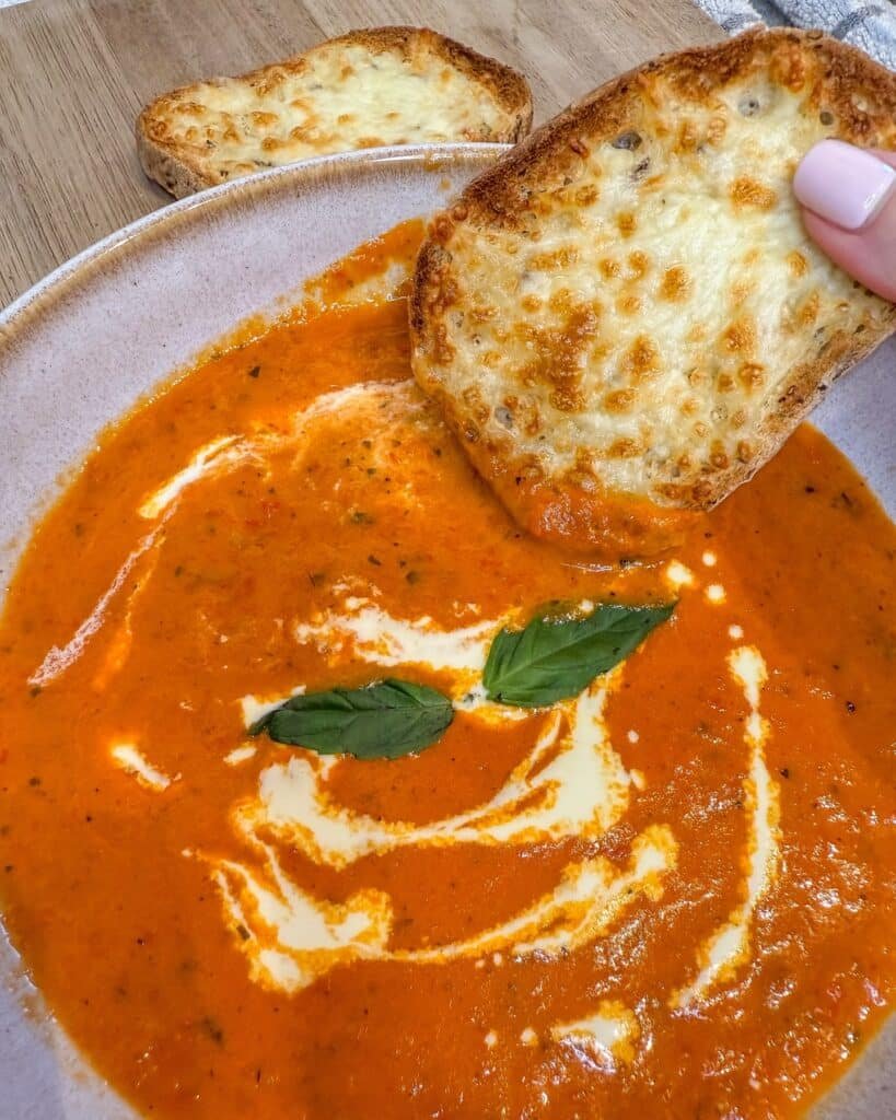 6. Creamy Tomato Basil Soup with Cheesy Toast