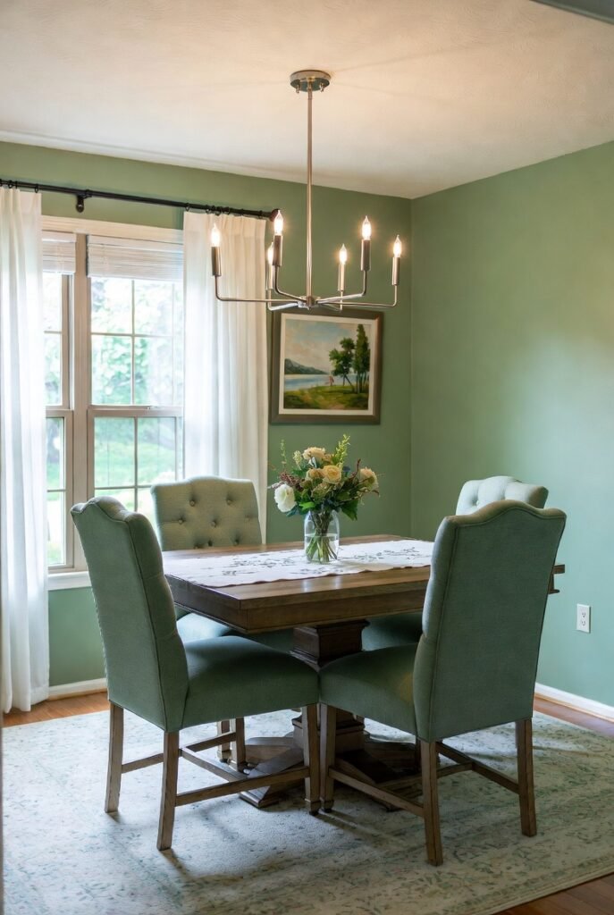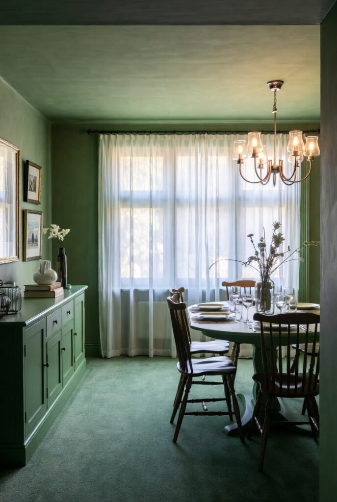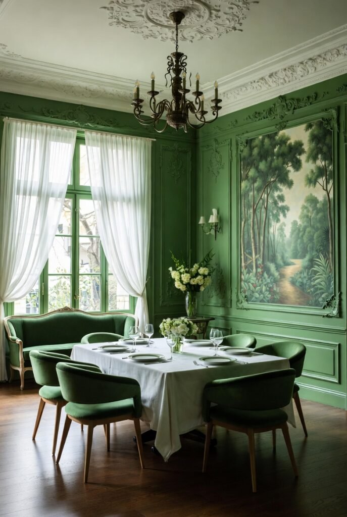A green dining room is more than a color choice—it’s a statement of balance, comfort, and timeless beauty.