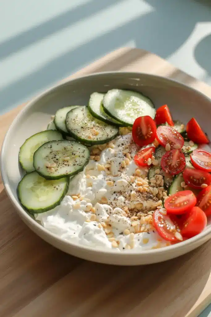 Skip the fruit and treat the cottage cheese like a savory dip. Top a one-cup serving with sliced cucumbers, cherry tomatoes, and a sprinkle of cracked black pepper. For an extra kick, add a dash of hot sauce or everything bagel seasoning. This high-volume meal feels substantial in your stomach but remains very light on calories.
