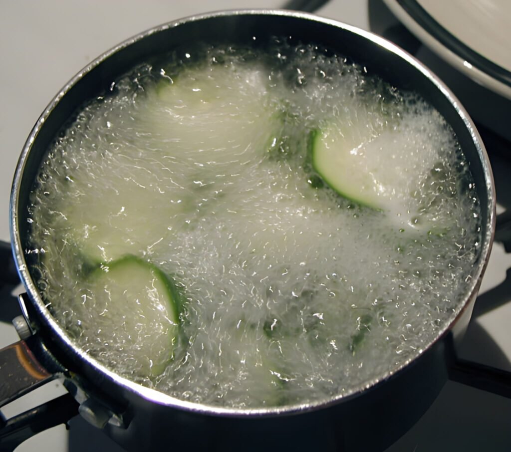 4.Blanch the zucchini pieces by putting them in hot water.