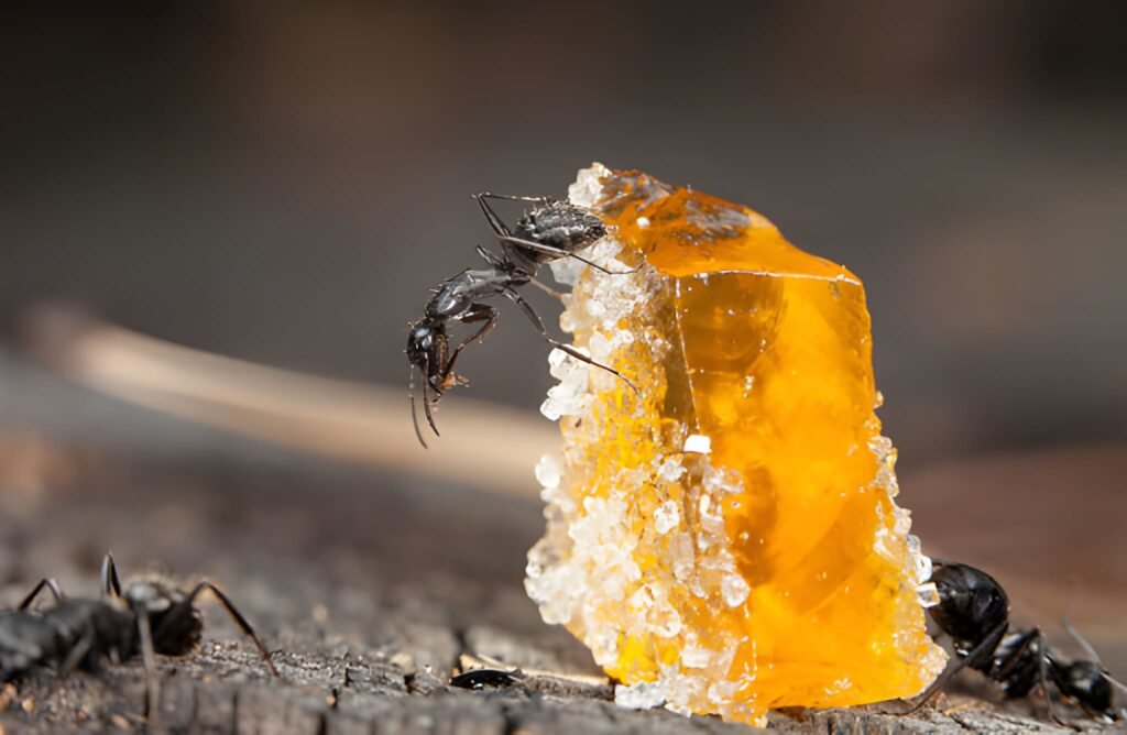 Well, they love sugary foods, scraps, plant pollen, proteins, and fats from other insects.