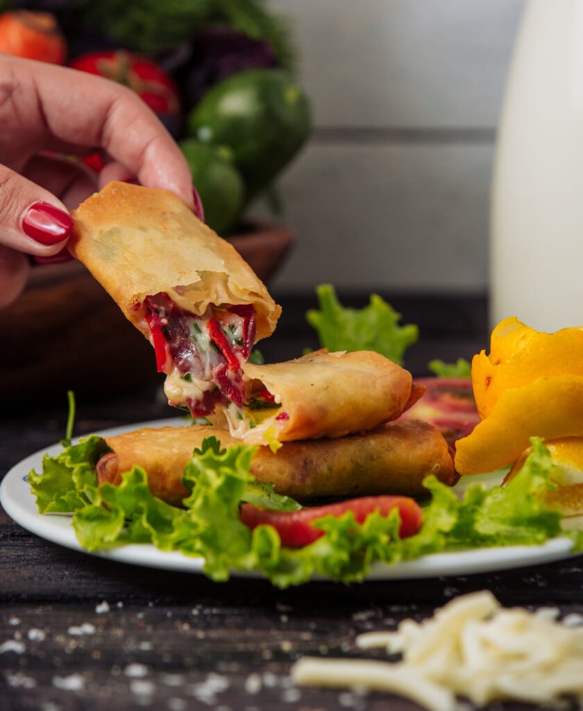 1.Ensure the egg roll wrappers are covered when you are not using them, so they don’t dry out.