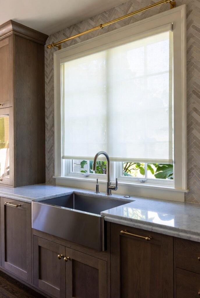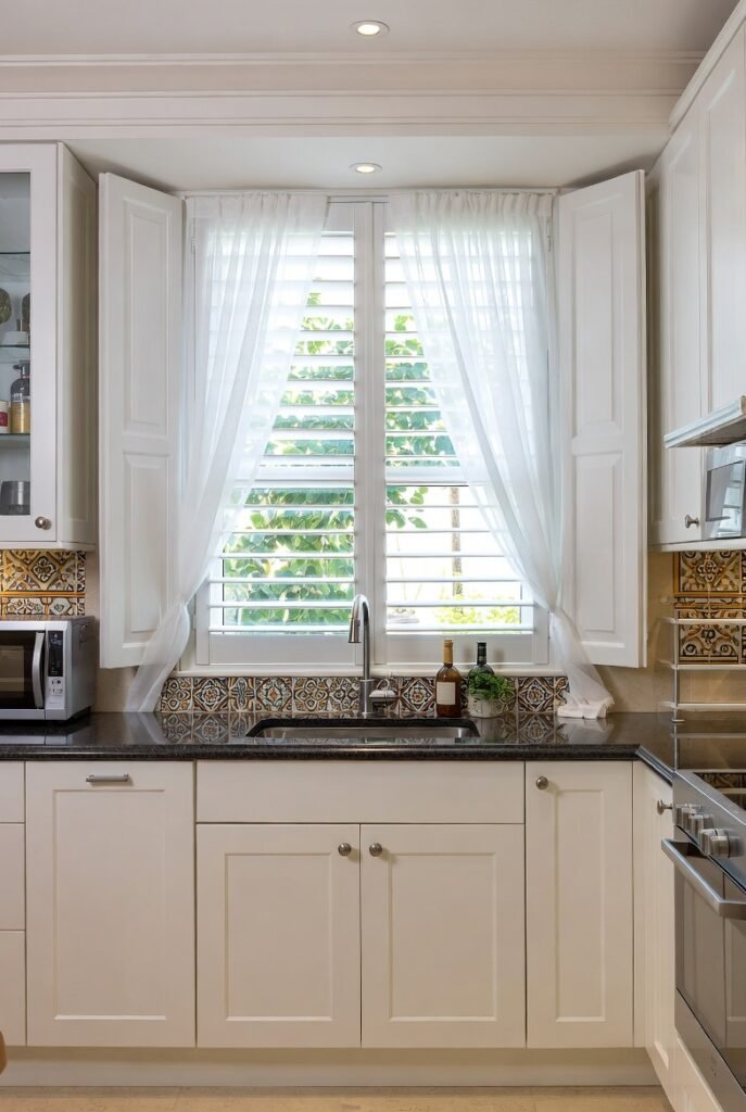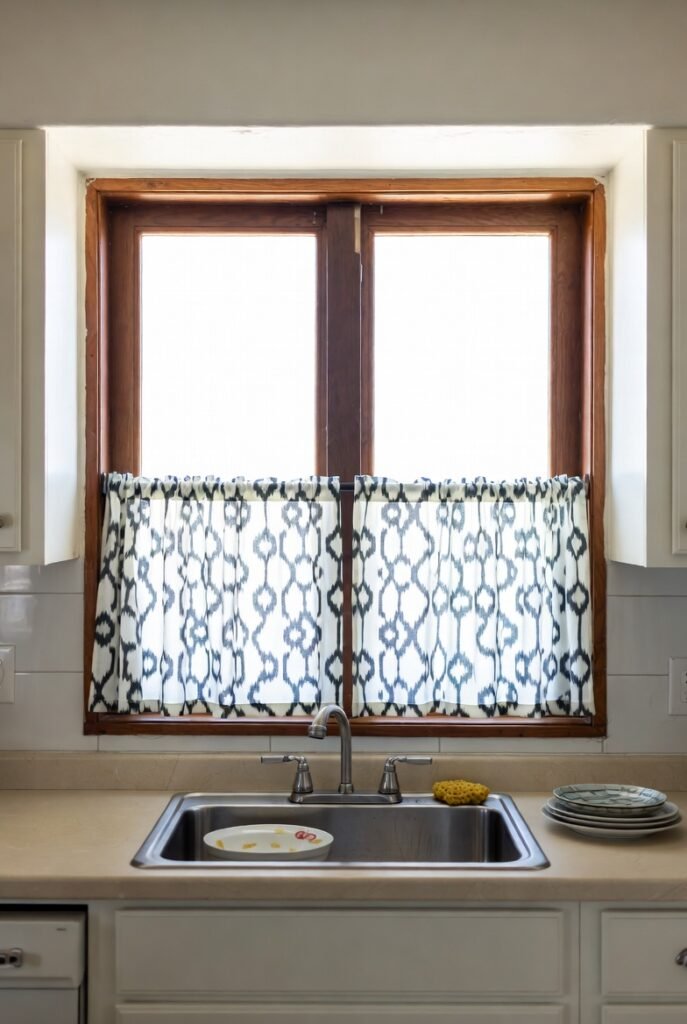 Café curtains are also surprisingly affordable and easy to change seasonally, making them one of the most low-commitment ways to refresh a kitchen sink window.