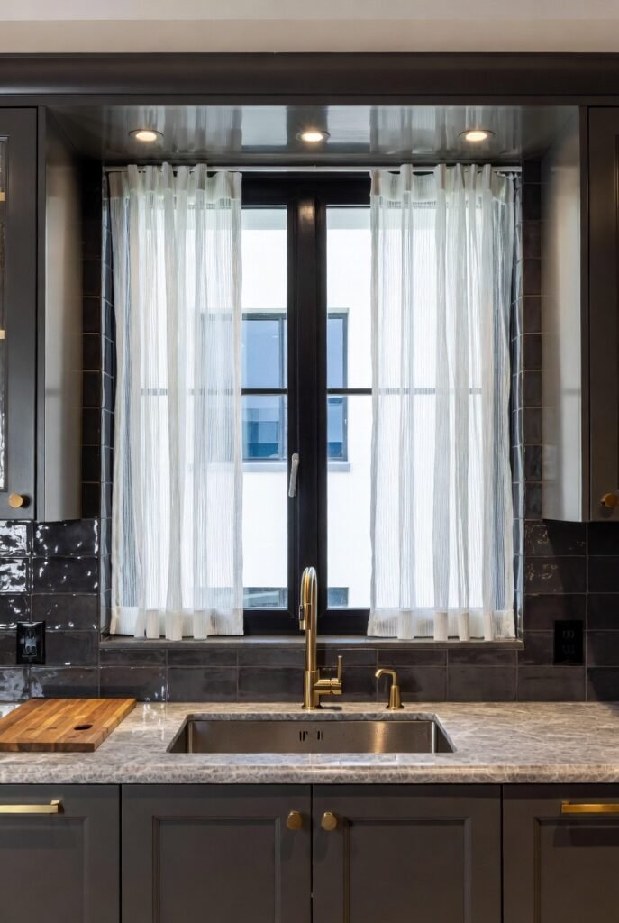 7. Sheer Curtains in a Moody Kitchen