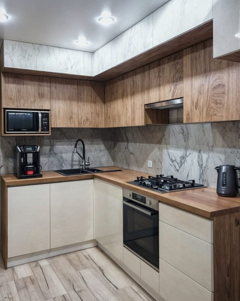 The upper cabinet space is kept clean and streamlined without any decoration on top, because when your materials are this good, they genuinely speak for themselves.