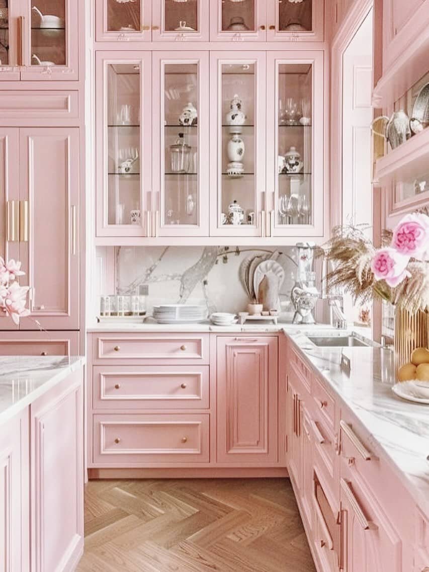 There is absolutely no halfway happening here — this kitchen went full pink and came out victorious.